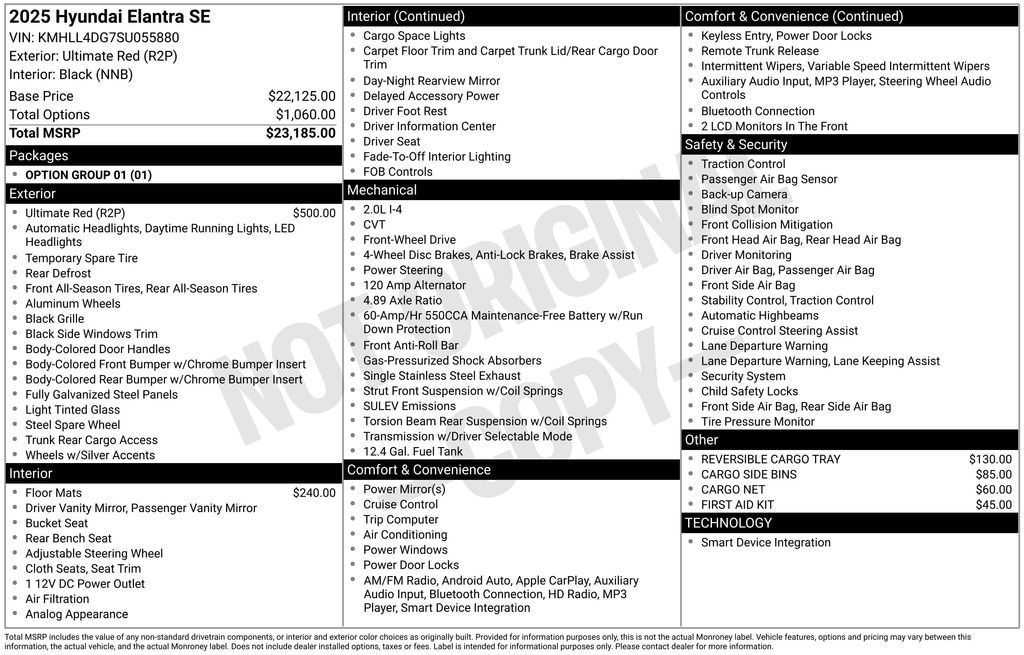 Priced below KBB Fair Purchase Price! 2025 Hyundai Elantra SE Ultimate Red I4 CVT 32/41 City/Highway MPG FWD