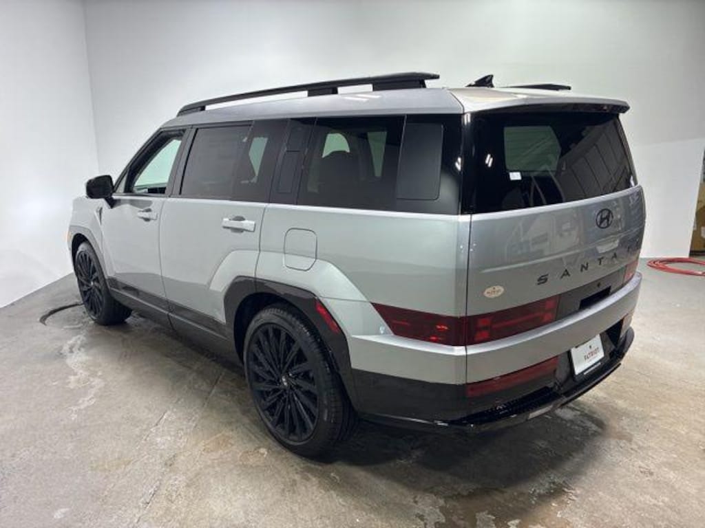 Option Group 01, Santa Fe Calligraphy, 4D Sport Utility, Shiftronic, AWD, Shimmering Silver Pearl, Gray Leather, 12 Speakers, 3rd row seats: bench, 4-Wheel Disc Brakes, ABS brakes, Air Conditioning, Alloy wheels, AM/FM radio: SiriusXM, Apple CarPlay & Android Auto, Auto High-beam Headlights, Auto-dimming Rear-View mirror, Automatic temperature control, Brake assist, Bumpers: body-color, Cargo Tray, Carpeted Floor Mats, Delay-off headlights, Driver door bin, Driver vanity mirror, Dual front impact airbags, Dual front side impact airbags, Electronic Stability Control, Emergency communication system, Exterior Parking Camera Rear, Four wheel independent suspension, Front anti-roll bar, Front Bucket Seats, Front Center Armrest, Front dual zone A/C, Front reading lights, Fully automatic headlights, Garage door transmitter: HomeLink, Heads-Up Display, Heated & Ventilated Front Bucket Seats, Heated door mirrors, Heated front seats, Heated rear seats, Heated steering wheel, Illuminated entry, Knee airbag, Leather steering wheel, Low tire pressure warning, Memory seat, Navigation System, Occupant sensing airbag, Outside temperature display, Overhead airbag, Overhead console, Panic alarm, Passenger door bin, Passenger vanity mirror, Power door mirrors, Power driver seat, Power Liftgate, Power moonroof, Power passenger seat, Power steering, Power windows, Premium Nappa Leather Seat Trim, Radio: AM/FM/HD Bose Premium Audio System, Rain sensing wipers, Rear anti-roll bar, Rear side impact airbag, Rear window defroster, Rear window wiper, Remote keyless entry, Security system, Speed control, Speed-sensing steering, Split folding rear seat, Spoiler, Steering wheel mounted audio controls, Tachometer, Telescoping steering wheel, Tilt steering wheel, Traction control, Trip computer, Turn signal indicator mirrors, Variably intermittent wipers, Ventilated front seats, Wheel Locks, and Wheels: 21" x 8.5J Unique Dark Finish Alloy.