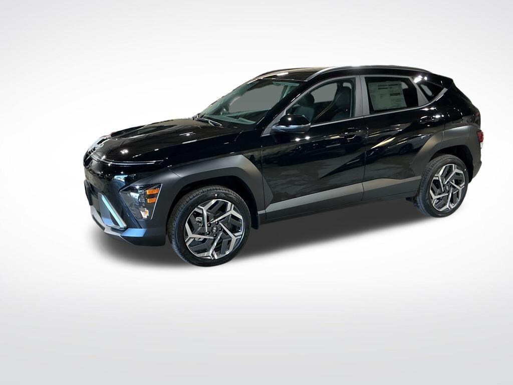 Option Group 01, Kona SEL Premium, 4D Sport Utility, I4, 8-Speed Automatic, AWD, Abyss Black Pearl, Black Premium Synthetic, 4-Wheel Disc Brakes, 6 Speakers, ABS brakes, Air Conditioning, Alloy wheels, AM/FM radio: SiriusXM, Apple CarPlay & Android Auto, Auto High-beam Headlights, Automatic temperature control, Brake assist, Bumpers: body-color, Cargo Net, Cargo Tray, Carpeted Floor Mats, Delay-off headlights, Door Sill Plates, Driver door bin, Driver vanity mirror, Dual front impact airbags, Dual front side impact airbags, Electronic Stability Control, Emergency communication system: Bluelink+, Exterior Parking Camera Rear, First Aid Kit, Four wheel independent suspension, Front anti-roll bar, Front Bucket Seats, Front Center Armrest, Front dual zone A/C, Front reading lights, Fully automatic headlights, H-Tex Seat Trim, Heated door mirrors, Heated Front Bucket Seats, Heated front seats, Illuminated entry, Leather steering wheel, Low tire pressure warning, Mud Guards, Occupant sensing airbag, Outside temperature display, Overhead airbag, Panic alarm, Passenger door bin, Passenger vanity mirror, Power door mirrors, Power driver seat, Power steering, Power windows, Radio: AM/FM/SiriusXM/HD Radio Audio System, Rear anti-roll bar, Rear seat center armrest, Rear window defroster, Rear window wiper, Remote keyless entry, Security system, Speed control, Speed-sensing steering, Split folding rear seat, Spoiler, Steering wheel mounted audio controls, Tachometer, Telescoping steering wheel, Tilt steering wheel, Traction control, Trip computer, Turn signal indicator mirrors, Variably intermittent wipers, and Wheels: 19" x 7.5J Black/Silver Alloy.