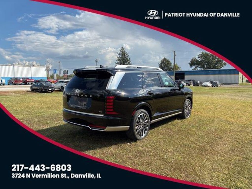 2026 Hyundai Palisade Calligraphy Abyss Black Pearl AWD 8-Speed Automatic V6 3rd row seats: split-bench, Heads-Up Display, Heated & Ventilated Front Bucket Seats, Memory seat, Navigation System, Option Group 01, Power Liftgate, Power moonroof, Rain sensing wipers, Wheels: 21" x 8.5J Alloy.