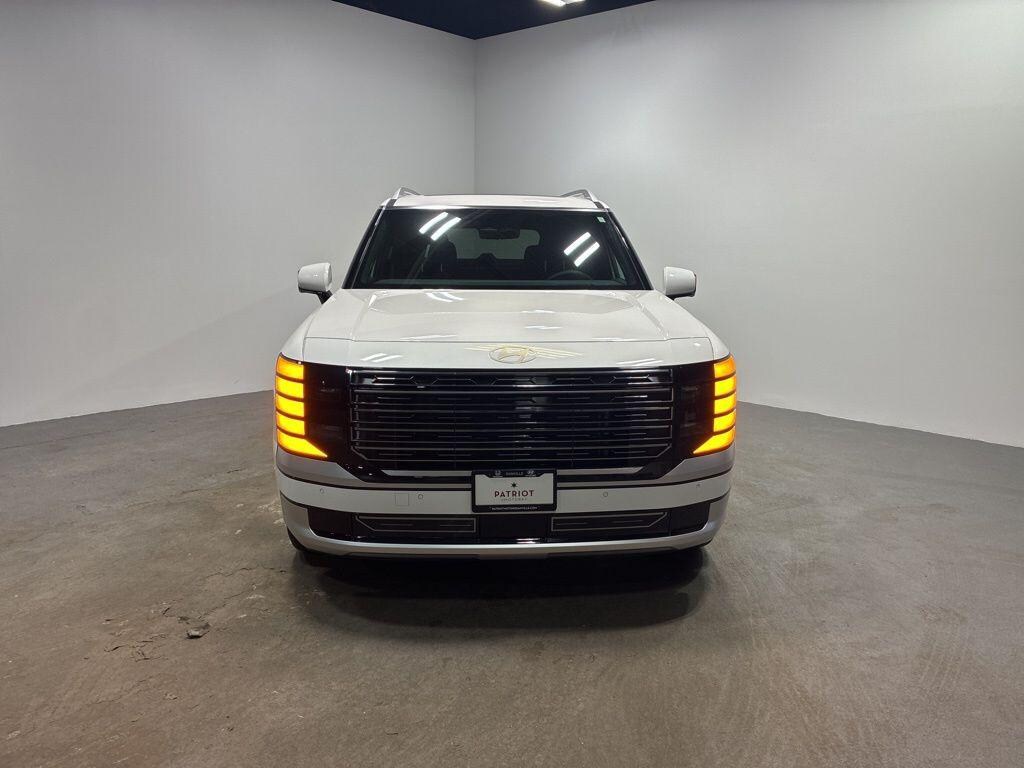 Option Group 01, Palisade Calligraphy, 4D Sport Utility, V6, 8-Speed Automatic, AWD, Creamy White Pearl, Black Leather, 14 Speakers, Apple CarPlay & Android Auto, Exterior Parking Camera Rear, Garage door transmitter: HomeLink, Genuine wood console insert, Genuine wood dashboard insert, Heads-Up Display, Heated & Ventilated Front Bucket Seats, Heated front seats, Heated rear seats, Heated steering wheel, Illuminated entry, Leather steering wheel, Memory seat, Navigation System, Power Liftgate, Power moonroof, Power passenger seat, Premium Nappa Leather Seat Trim, Radio: Infotainment Navigation System, Rain sensing wipers, Speed control, Steering wheel mounted audio controls, Telescoping steering wheel, Variably intermittent wipers, Ventilated front seats, Ventilated rear seats, Wheels: 21" x 8.5J Alloy, 3rd row seats: split-bench, 4-Wheel Disc Brakes, ABS brakes, Air Conditioning, Alloy wheels, AM/FM radio: SiriusXM, Audio memory, Auto High-beam Headlights, Auto-dimming door mirrors, Auto-dimming Rear-View mirror, Auto-leveling suspension, Automatic temperature control, Brake assist, Bumpers: body-color, Cargo Cover, Cargo Net, Cargo Tray, Carpeted Floor Mats, Compass, Delay-off headlights, Driver door bin, Driver vanity mirror, Dual front impact airbags, Dual front side impact airbags, Electronic Stability Control, Emergency communication system: Bluelink+, First Aid Kit, Four wheel independent suspension, Front anti-roll bar, Front Bucket Seats, Front Center Armrest, Front dual zone A/C, Front reading lights, Fully automatic headlights, Heated door mirrors, HVAC memory, Knee airbag, Low tire pressure warning, Occupant sensing airbag, Outside temperature display, Overhead airbag, Overhead console, Panic alarm, Passenger door bin, Passenger vanity mirror, Power door mirrors, Power driver seat, Power steering, Power windows, Radio data system, Rear air conditioning, Rear anti-roll bar, Rear audio controls, Rear reading lights, Rear side impact airbag, Rear window defroster, Rear window wiper, Reclining 3rd row seat, Remote keyless entry, Security system, Split folding rear seat, Spoiler, Tachometer, Tilt steering wheel, Traction control, Trip computer, and Turn signal indicator mirrors.