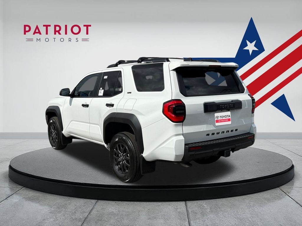 - Black horizontal-bar grille, mirror caps, door handles, and overfenders; color-keyed rear spoiler; black "sr5" and "4runner" badges.