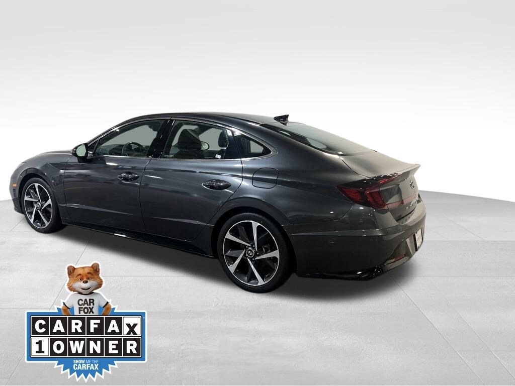 With options like Option Group 01, Sonata SEL Plus, 4D Sedan, I4, 8-Speed Automatic with SHIFTRONIC, FWD, Portofino Gray, Black Artificial Leather, 12 Speakers, 19" x 8.0J Aluminum Alloy Wheels, 4-Wheel Disc Brakes, ABS brakes, Air Conditioning, Alloy wheels, AM/FM radio: SiriusXM, Apple CarPlay & Android Auto, Auto High-beam Headlights, Auto-dimming Rear-View mirror, Automatic temperature control, Brake assist, Bumpers: body-color, Carpeted Floor Mats, Delay-off headlights, Driver door bin, Driver vanity mirror, Dual front impact airbags, Dual front side impact airbags, Electronic Stability Control, Emergency communication system: Blue Link Connected Car Service (3-year complimentary subscription), Exterior Parking Camera Rear, Four wheel independent suspension, Front anti-roll bar, Front Bucket Seats, Front Center Armrest, Front dual zone A/C, Front reading lights, Fully automatic headlights, Heated door mirrors, Heated Front Bucket Seats, Heated front seats, Illuminated entry, Knee airbag, Leather steering wheel, Leatherette/Suede Combination Seating Surfaces, Low tire pressure warning, Navigation System, Occupant sensing airbag, Outside temperature display, Overhead airbag, Overhead console, Panic alarm, Passenger door bin, Passenger vanity mirror, Power door mirrors, Power driver seat, Power moonroof, Power steering, Power windows, Radio data system, Radio: AM/FM/MP3/HD/SiriusXM Display Audio w/Nav, Rear anti-roll bar, Rear Bumper Applique, Rear seat center armrest, Rear side impact airbag, Rear window defroster, Remote keyless entry, Security system, Speed control, Speed-sensing steering, Speed-Sensitive Wipers, Split folding rear seat, Steering wheel mounted audio controls, Tachometer, Telescoping steering wheel, Tilt steering wheel, Traction control, Trip computer, Trunk Cargo Net, Turn signal indicator mirrors, Variably intermittent wipers, and Wheel Locks.