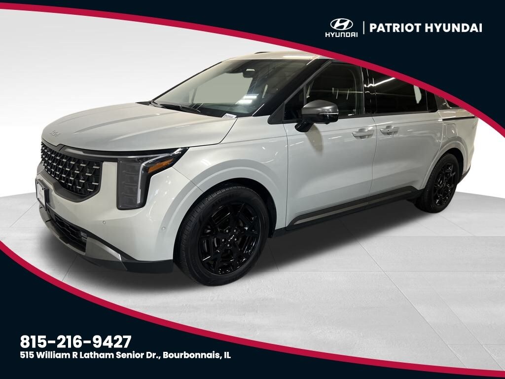 With options like Rear Seat Entertainment Package (Dual Screen Rear Seat Entertainment System), Carnival SX Prestige, 4D Passenger Van, V6, 8-Speed Automatic, FWD, Ivory Silver, Off-Black Leather, Navigation system: AVN 5.0 Navigation System, 12 Speakers, 3.51 Axle Ratio, 3rd row seats: split-bench, 4-Wheel Disc Brakes, ABS brakes, Air Conditioning, Alloy wheels, AM/FM radio: SiriusXM, Apple CarPlay & Android Auto, Auto High-beam Headlights, Auto-dimming Rear-View mirror, Automatic temperature control, Brake assist, Bumpers: body-color, Cargo Tray, Carpeted Floor Mats (8-Passenger), Compass, Delay-off headlights, Driver door bin, Driver vanity mirror, Dual front impact airbags, Dual front side impact airbags, Electronic Stability Control, Emergency communication system, Exterior Parking Camera Rear, Four wheel independent suspension, Front anti-roll bar, Front Bucket Seats, Front Center Armrest, Front dual zone A/C, Front fog lights, Front reading lights, Fully automatic headlights, Garage door transmitter: HomeLink, Heads-Up Display, Heated & Ventilated Front Bucket Seats, Heated door mirrors, Heated front seats, Heated steering wheel, Illuminated entry, Knee airbag, Leather Shift Knob, Leather steering wheel, Low tire pressure warning, Memory seat, Occupant sensing airbag, Outside temperature display, Overhead airbag, Overhead console, Panic alarm, Passenger door bin, Passenger vanity mirror, Power 2nd-Row Moonroof, Power door mirrors, Power driver seat, Power Liftgate, Power moonroof, Power passenger seat, Power steering, Power windows, Pure Leather Seat Trim, Radio: AM/FM/HD Audio System, Rain sensing wipers, Rear air conditioning, Rear anti-roll bar, Rear reading lights, Rear window defroster, Rear window wiper, Reclining 3rd row seat, Remote keyless entry, Security system, Speed control, Speed-sensing steering, Split folding rear seat, Spoiler, Steering wheel mounted audio controls, Tachometer, Telescoping steering wheel, Tilt steering wheel, Traction control, Trip computer, Turn signal indicator mirrors, Variably intermittent wipers, Ventilated front seats, Wheel Locks, and Wheels: 7.5J x 19" Alloy Dark Edition.